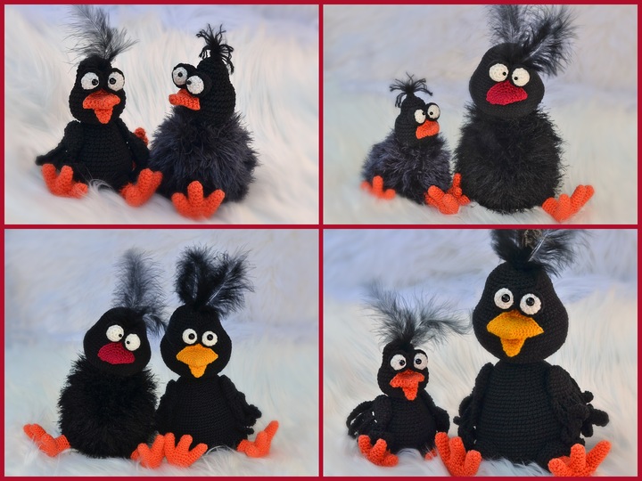 Sparset Häkelanleitungen großer Rabe und Rabenküken in jeweils 2 Varianten