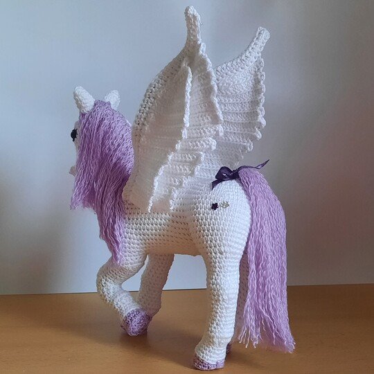 Ich hab Chenille Wolle benutzt und erstmal nur das Pferd gemacht .