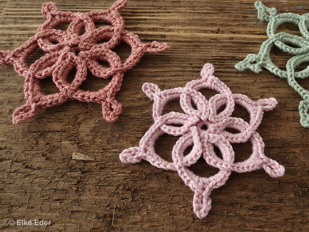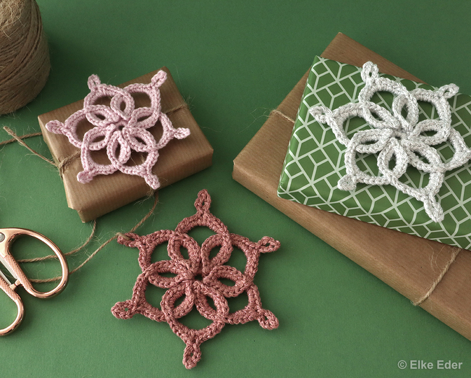 Nur drei Runden benötigt es um die raffiniert verschlungenen Schneeflocken "Lorelei" zu zaubern. Diese Schneeflocken sind ein absoluter Blickfang und für viele Gelegenheiten nutzbar, zum Beispiel...