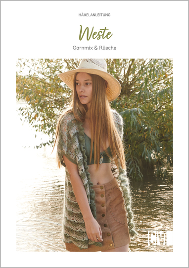 Drei Garne, ein superschönes Zackenmuster mit Büschelmaschen und zum Schluss noch die Rüsche aus einem kuschelig weichen Mohairgarn mit Seide; mehr braucht es nicht für diese Weste mit typischem Boho-Touch.