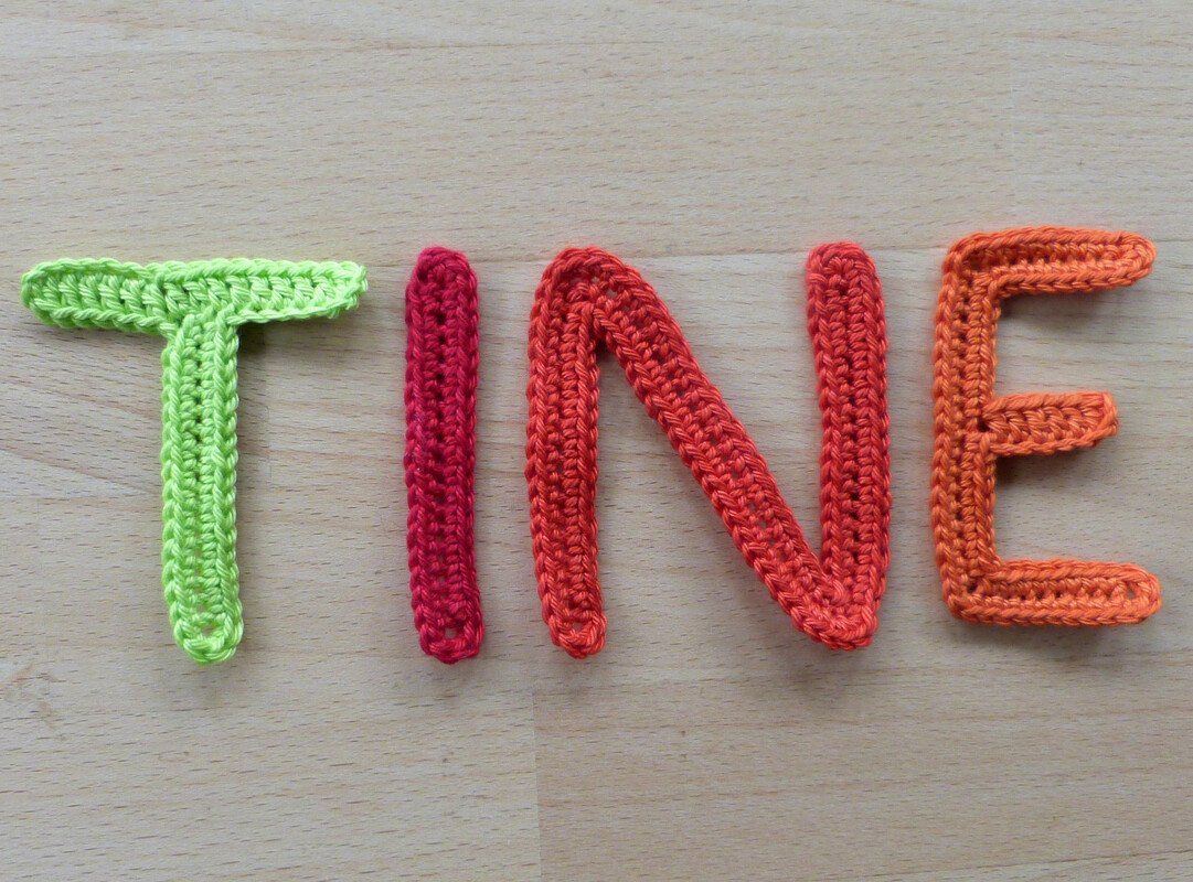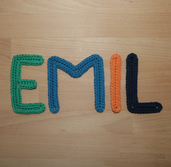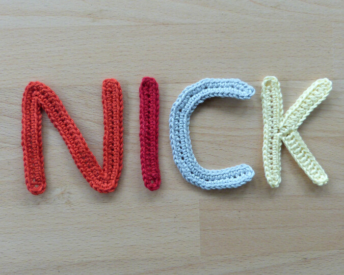 Häkelanleitung für große schlanke Buchstaben-Applikationen zum Aufnähen oder Aufkleben.