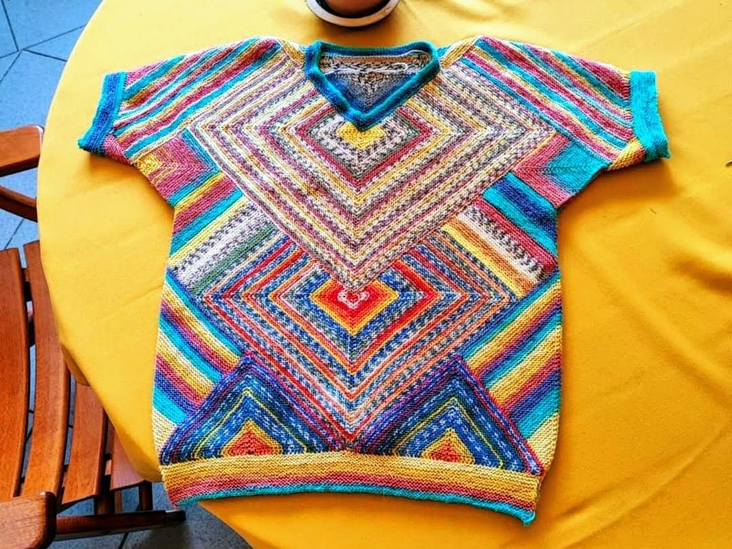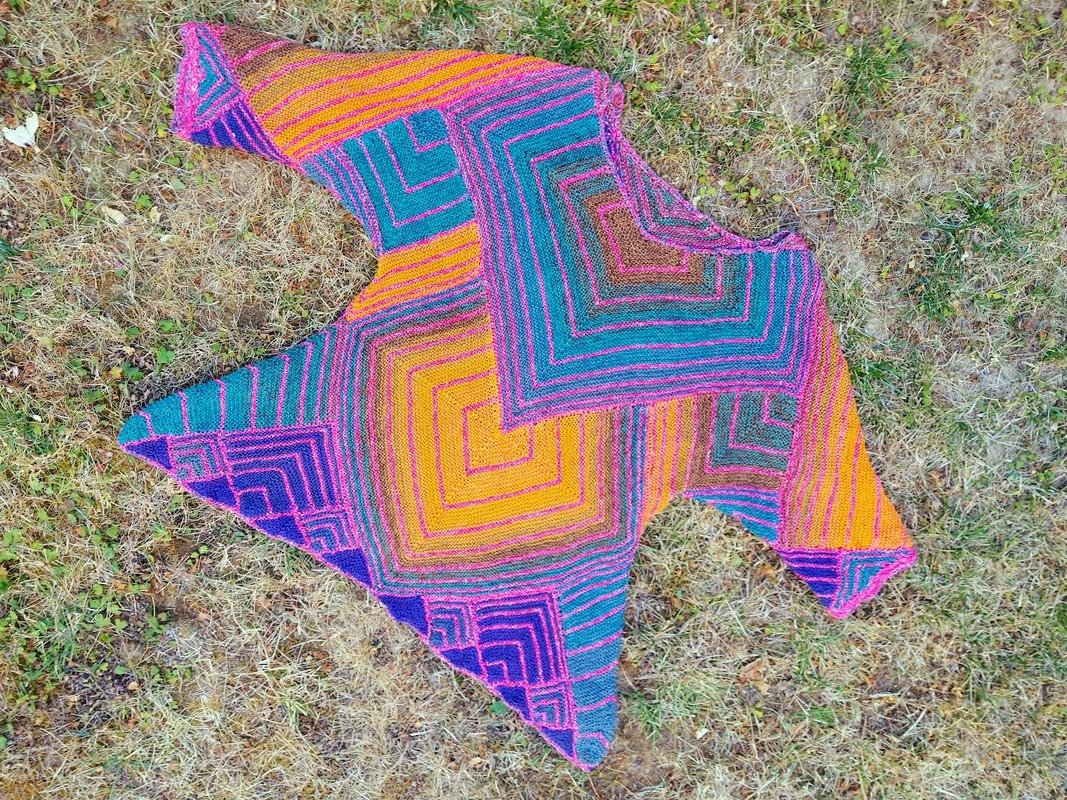 Karl ist eine Tunika die wahlweise in gerader Form oder in A-Linie gestrickt wird. Karl wird nahtlos in einem Stück gestrickt. Wers bunt mag, perfekt um Reste jeglicher Art zu verarbeiten.