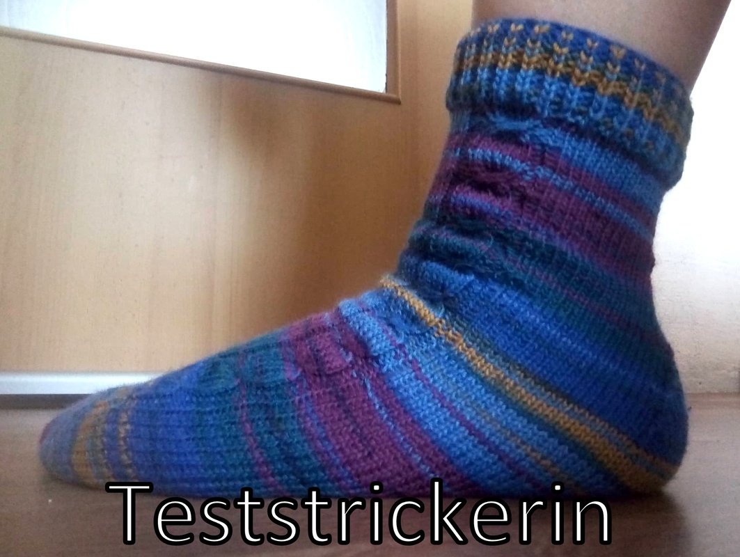 Ganz einfach Socken stricken mit der NEUEN Fixen-Quicky-Ferse, eine Kombination aus Fixen- und Quicky-Ferse, mit einem schönen Zopfmuster.