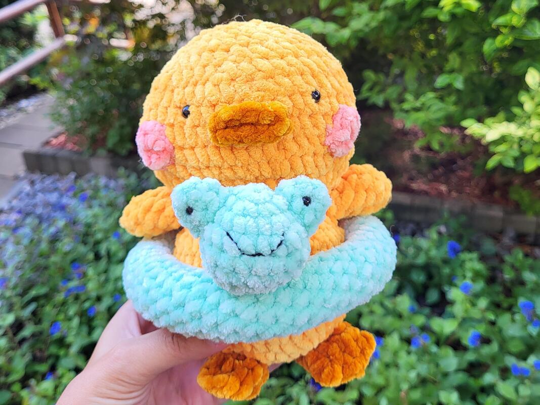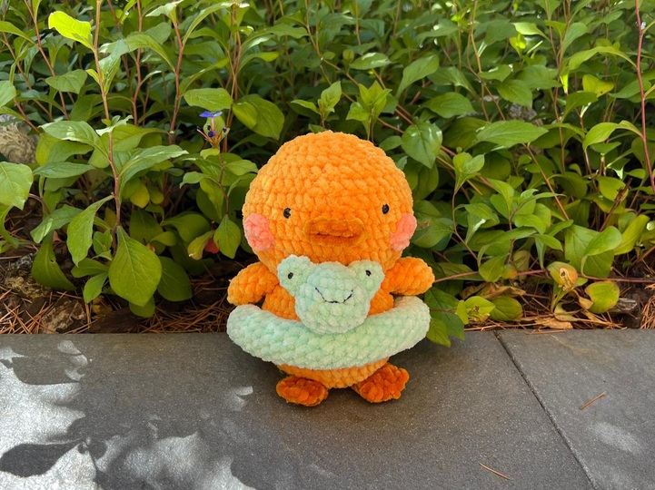 Die Ente "Daffy" wird ca. 20 cm gross. Je nach Nadelstärke, Material und Häkelstärke kann die Größe variieren.