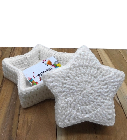 Du kannst die Stern-Schachtel aus jedem beliebigen Garn mit passender Häkelnadel häkeln, die Größe und der Verbrauch ändern sich dann ggf.