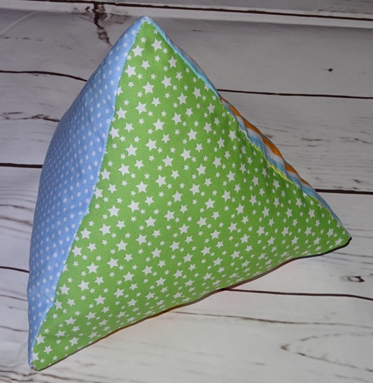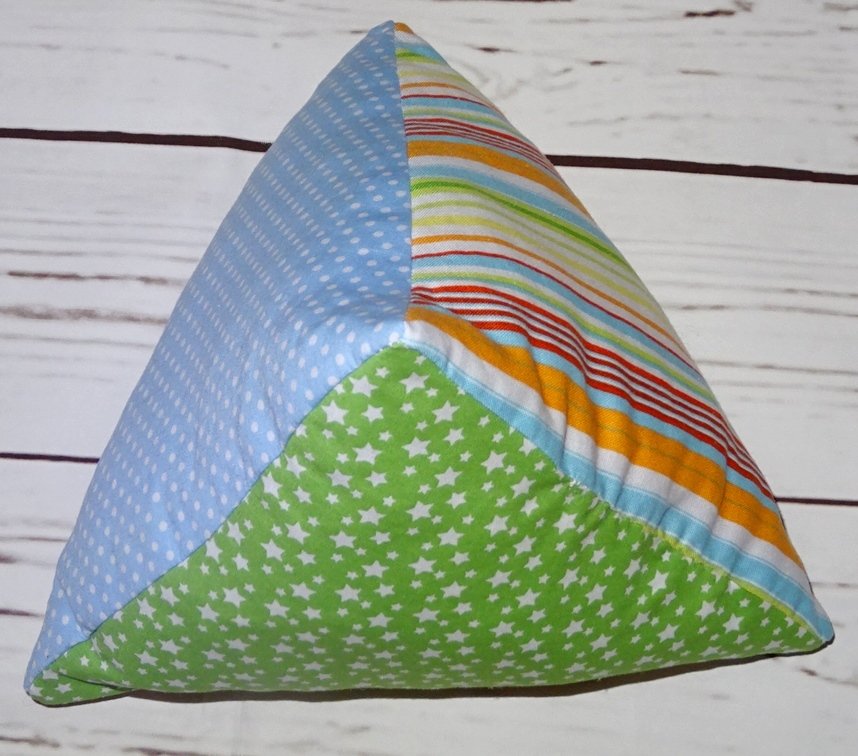 Dieses besondere Kissen in Dreiecksform ist schnell genäht und in den kleinen Größen perfekt zur Restverwertung.