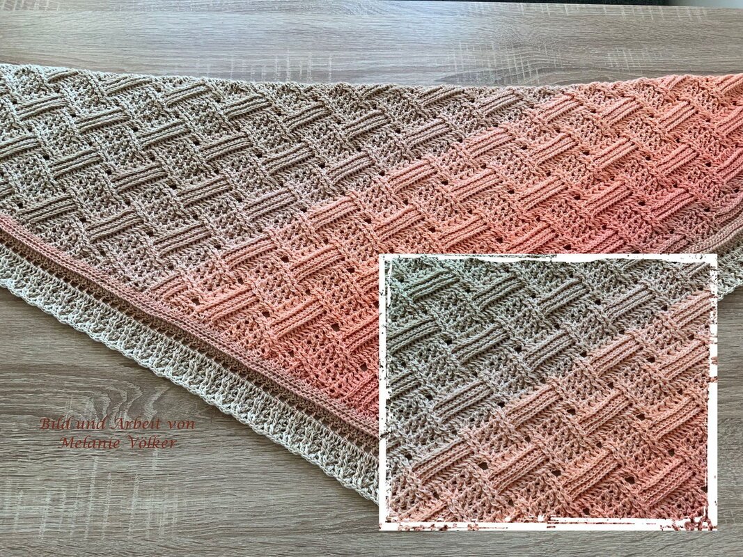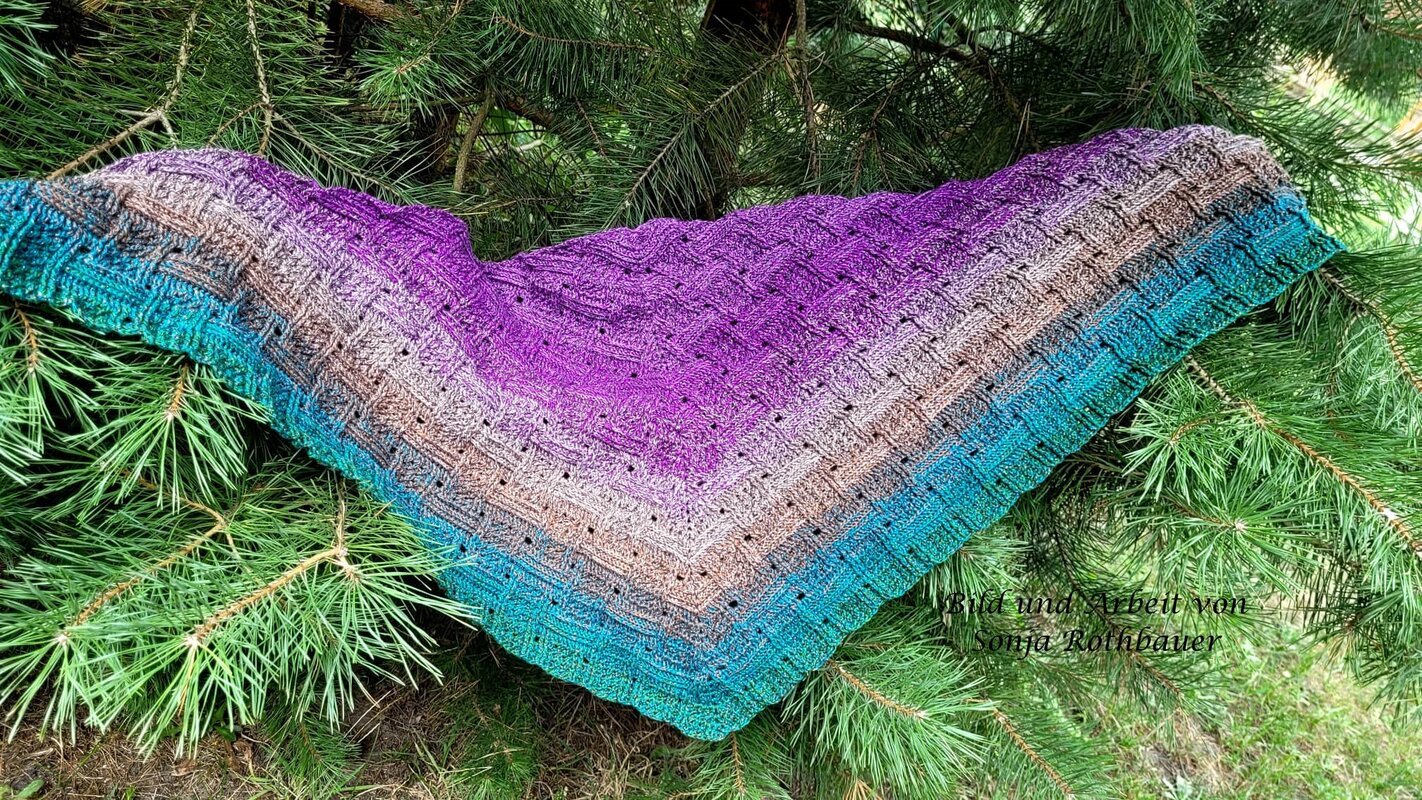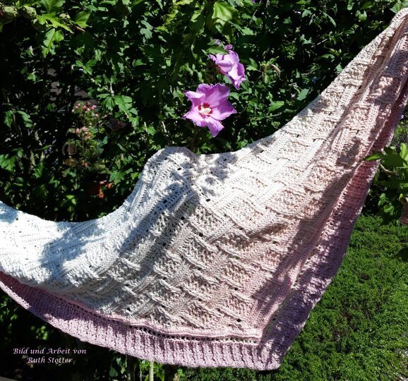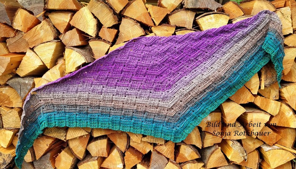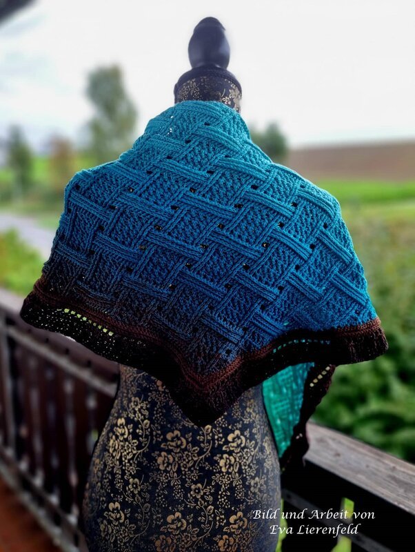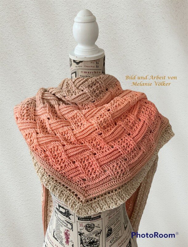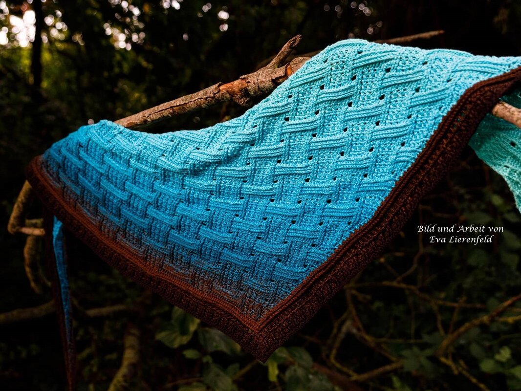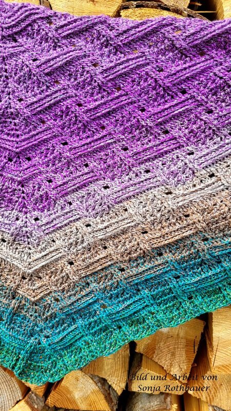 Mein Tuch "Runa" besteht aus Stäbchen, vorderen und hinteren Reliefstäbchen und hat dadurch einen 3D-Charakter. Das Muster ist leicht zu häkeln und ist daher fernsehtauglich.