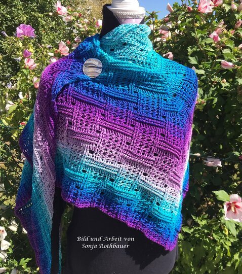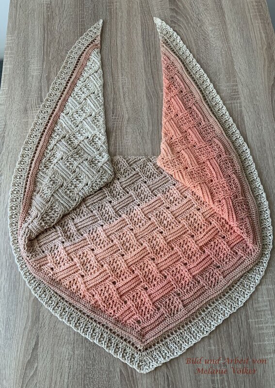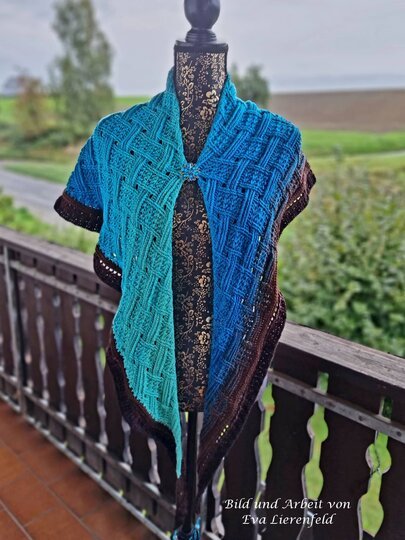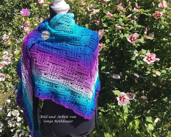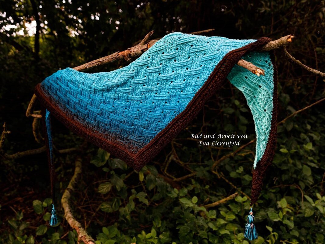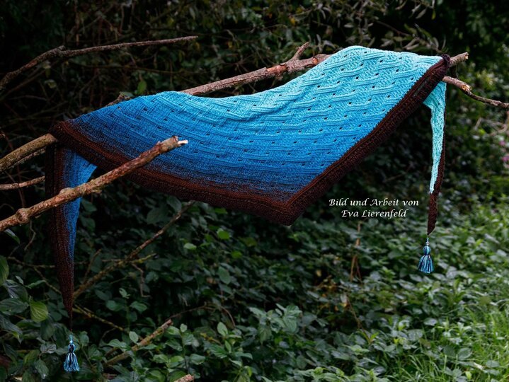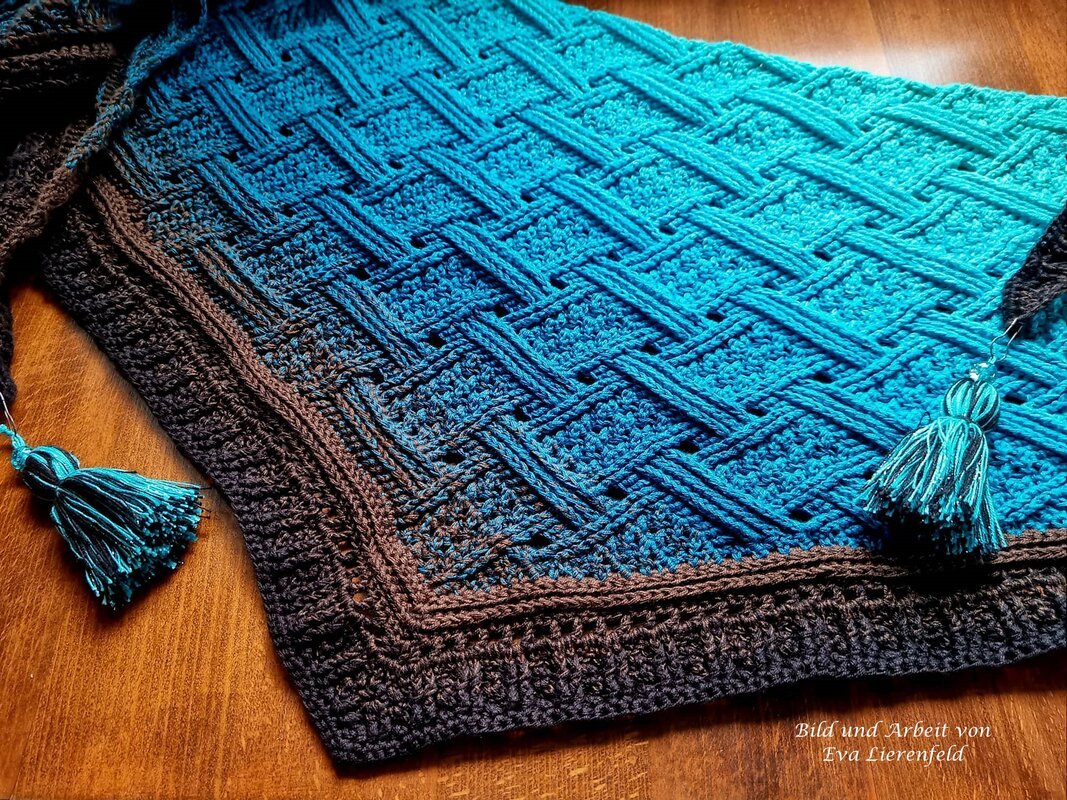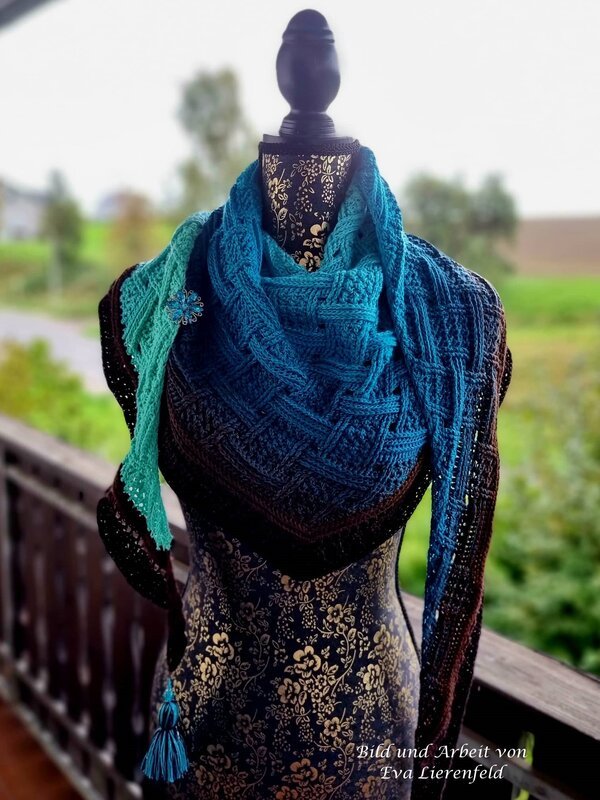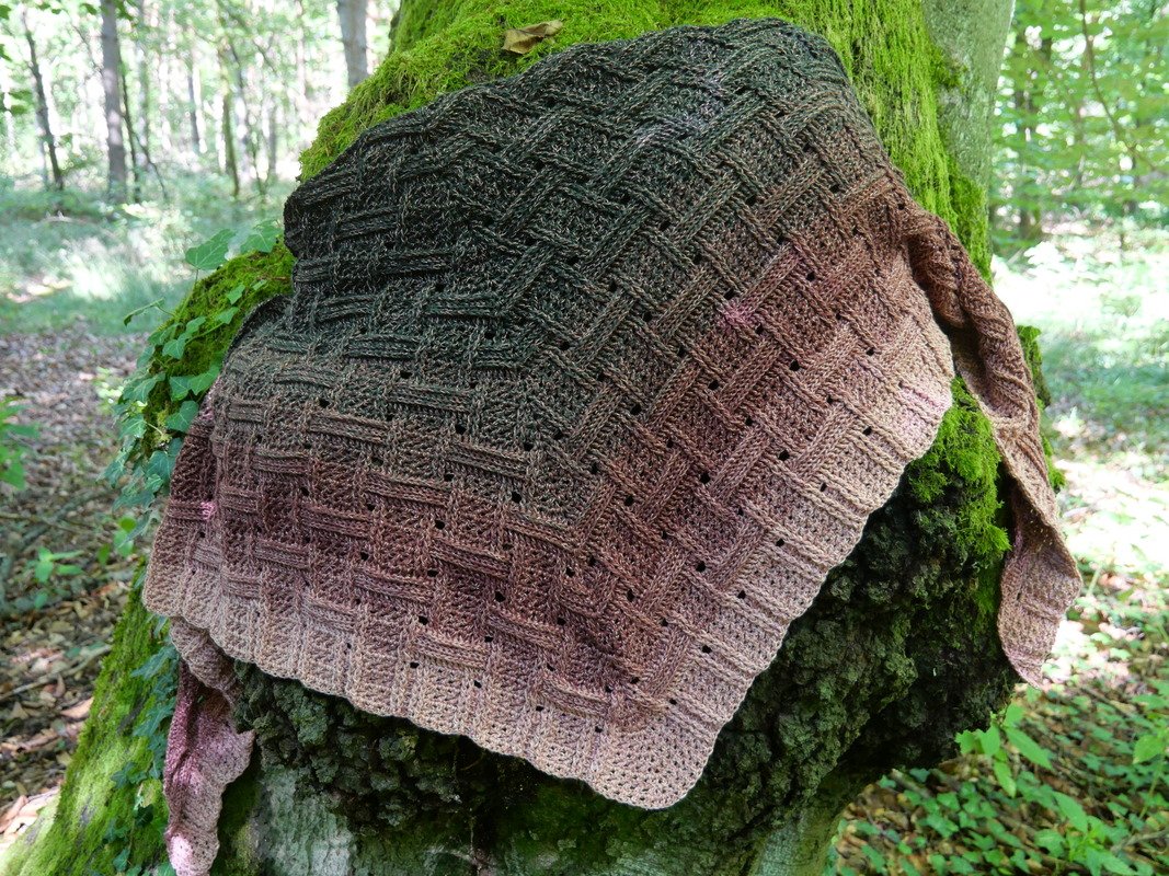 Mein Tuch "Runa" besteht aus Stäbchen, vorderen und hinteren Reliefstäbchen und hat dadurch einen 3D-Charakter. Das Muster ist leicht zu häkeln und ist daher fernsehtauglich.
