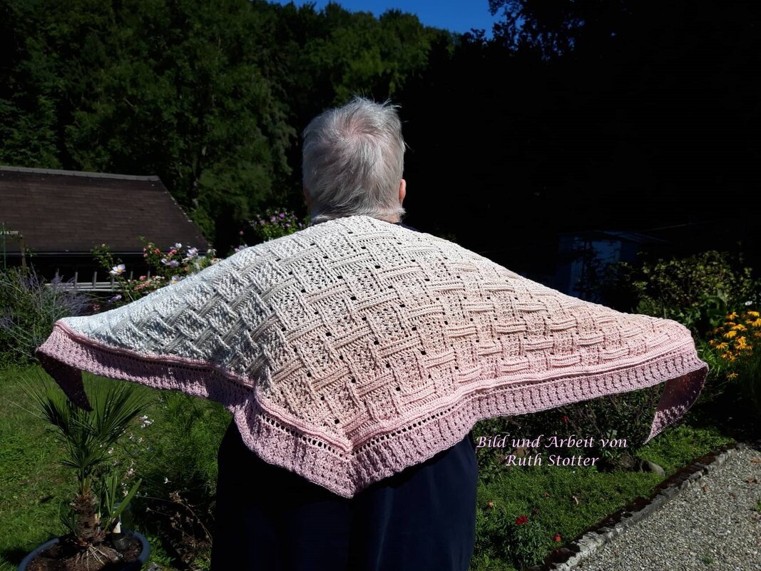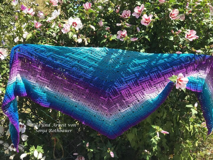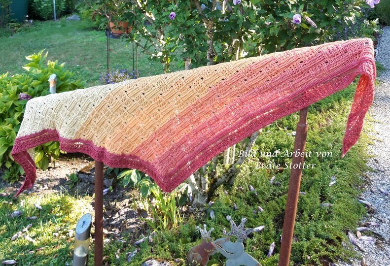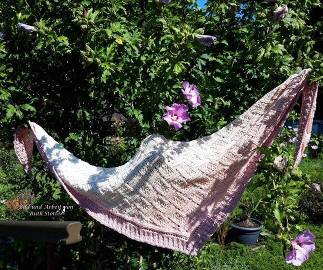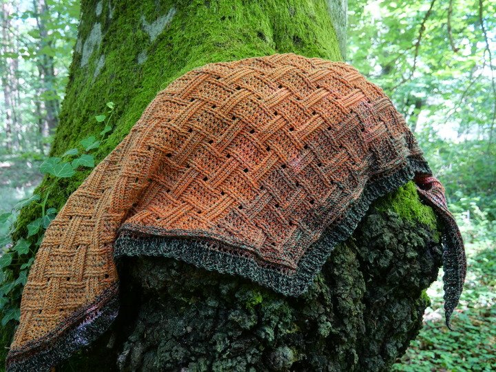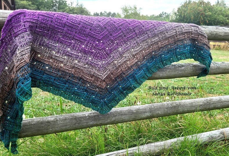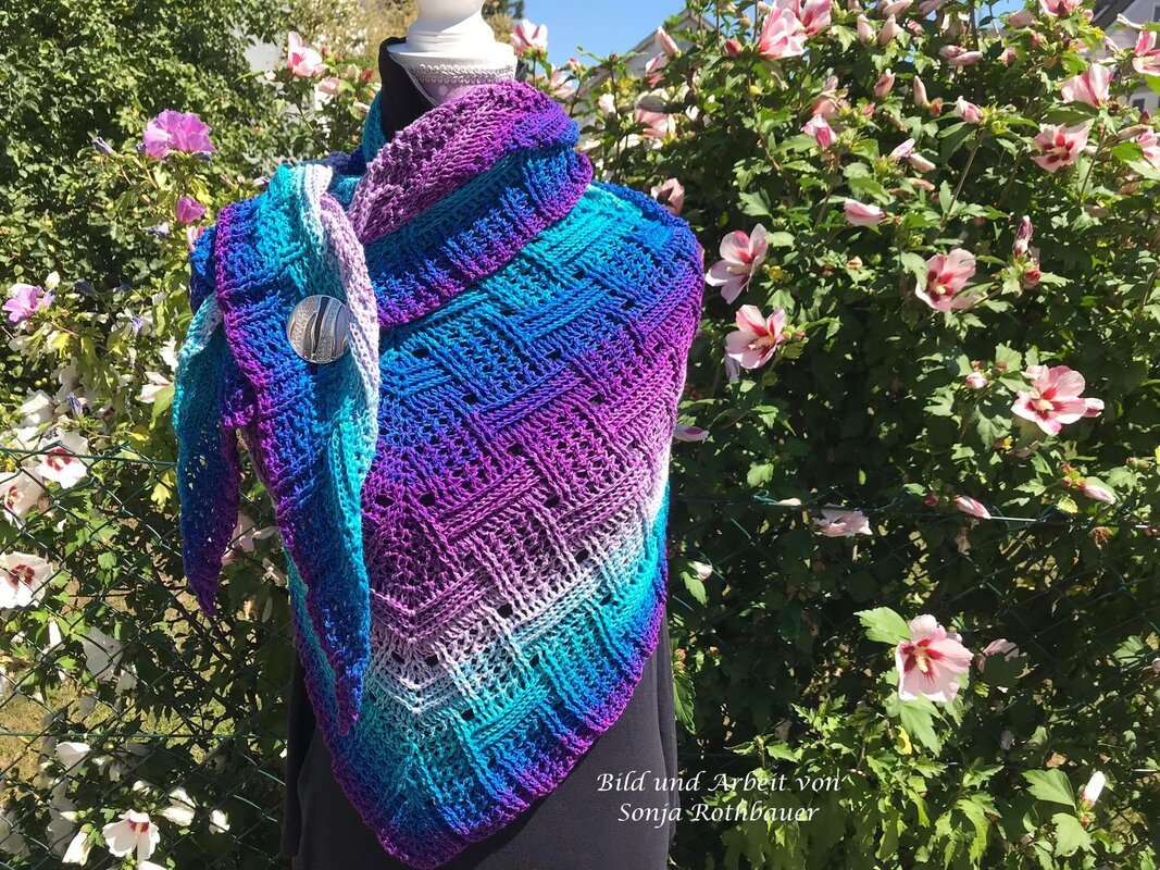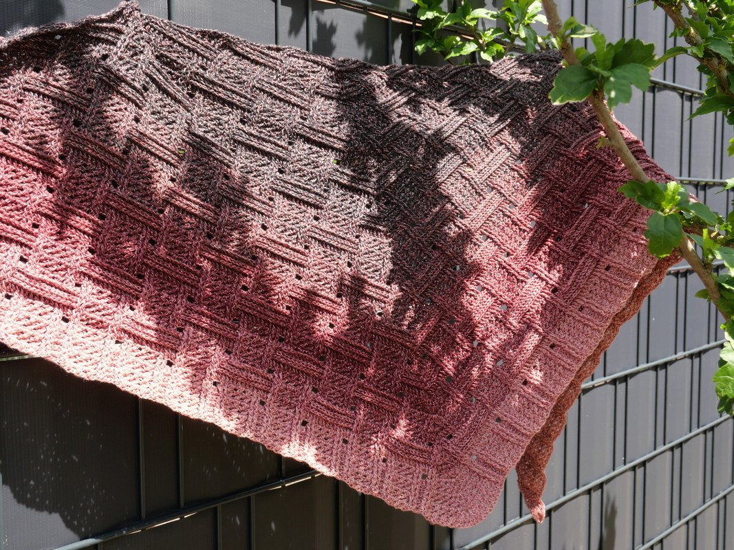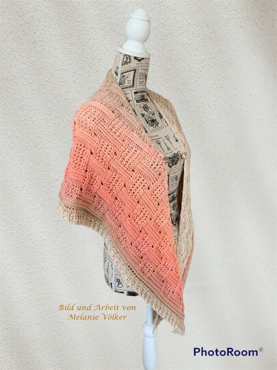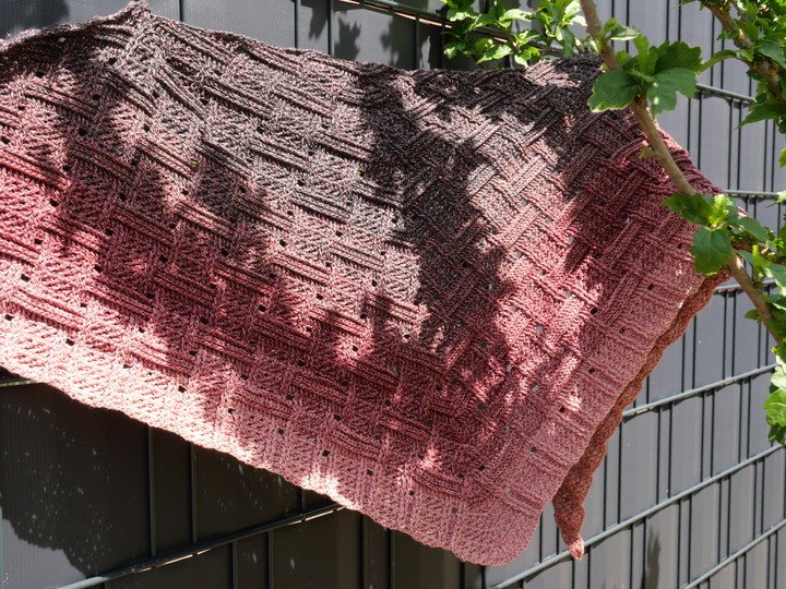 Mein Tuch "Runa" besteht aus Stäbchen, vorderen und hinteren Reliefstäbchen und hat dadurch einen 3D-Charakter. Das Muster ist leicht zu häkeln und ist daher fernsehtauglich.