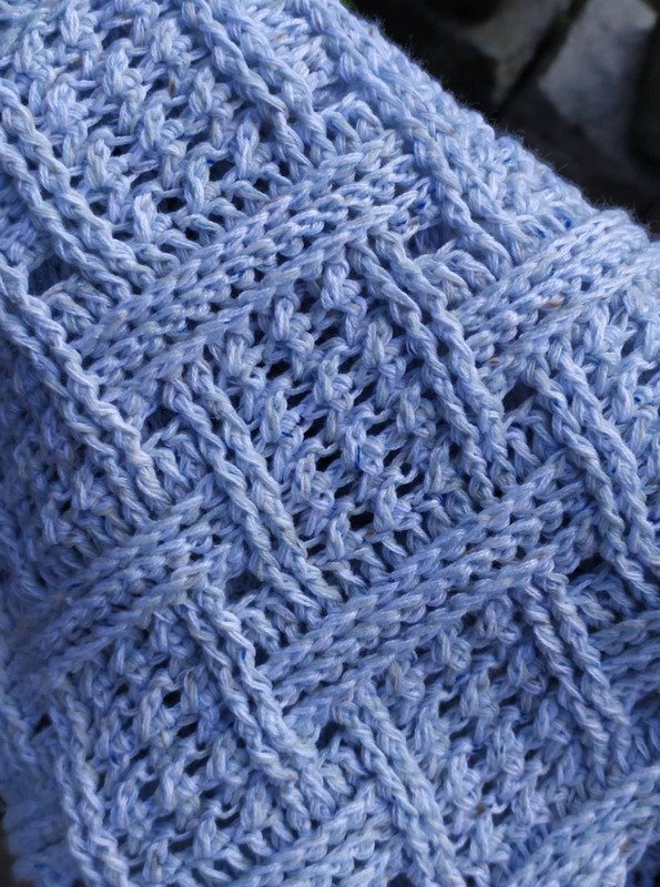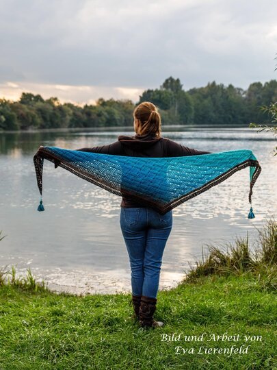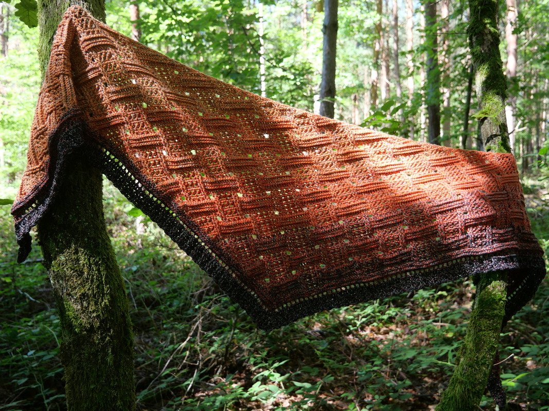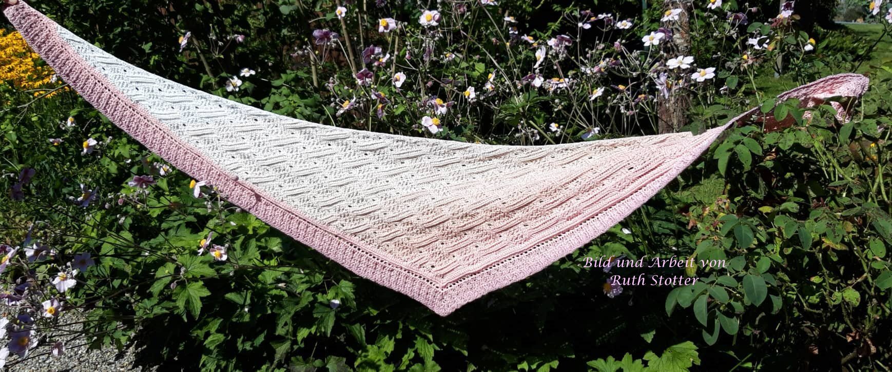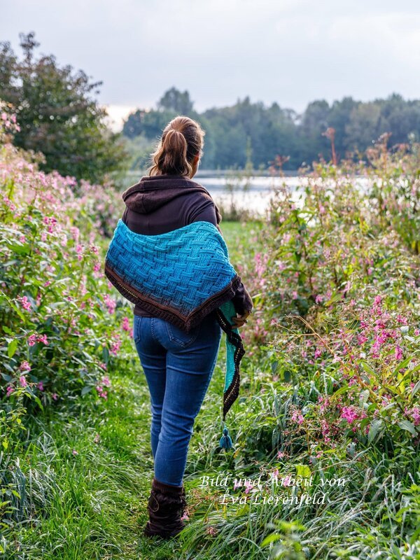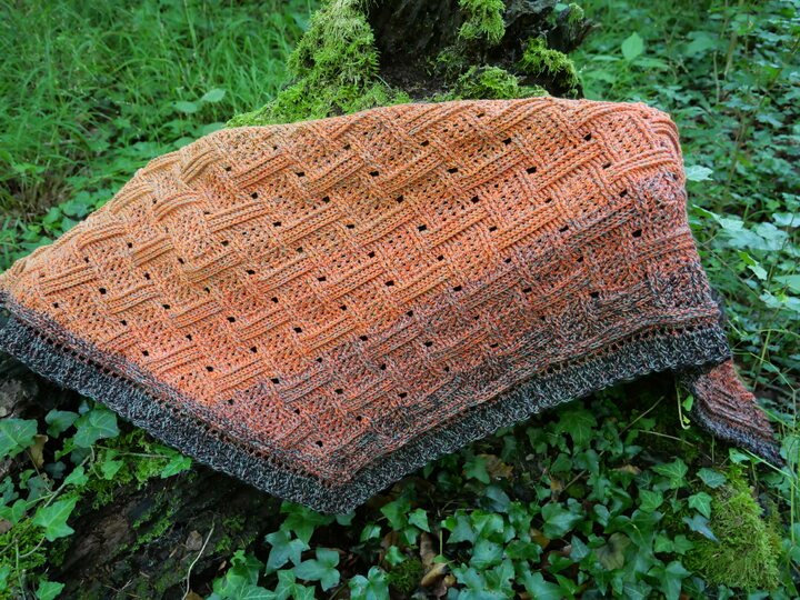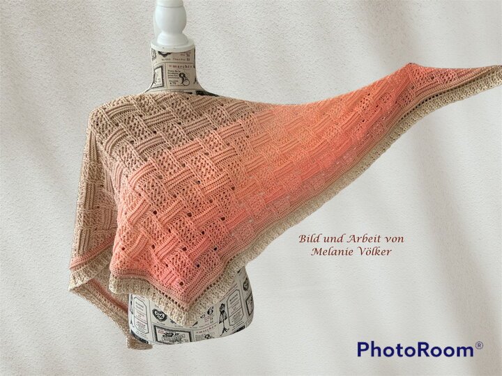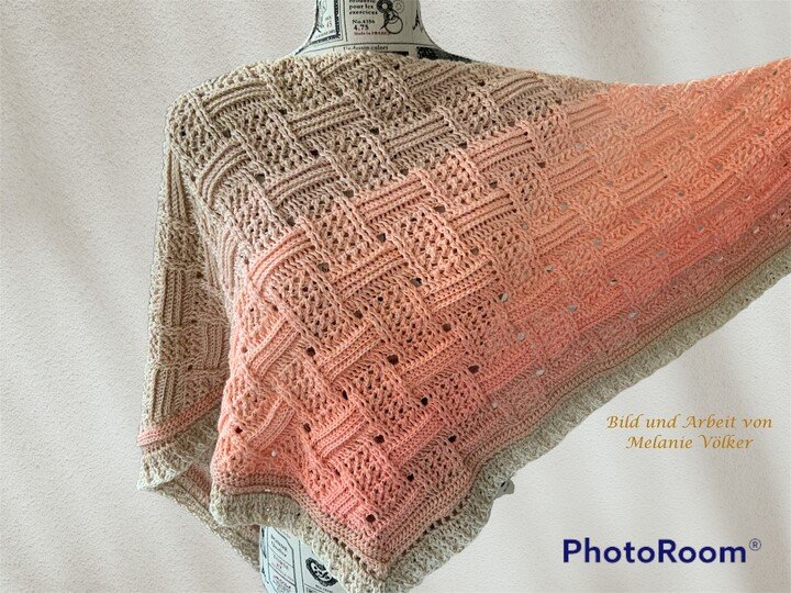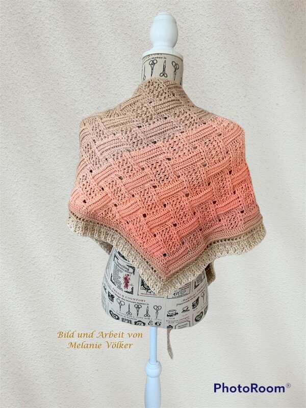 Mein Tuch "Runa" besteht aus Stäbchen, vorderen und hinteren Reliefstäbchen und hat dadurch einen 3D-Charakter. Das Muster ist leicht zu häkeln und ist daher fernsehtauglich.