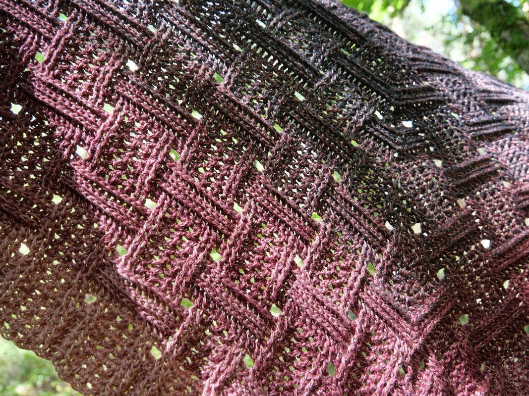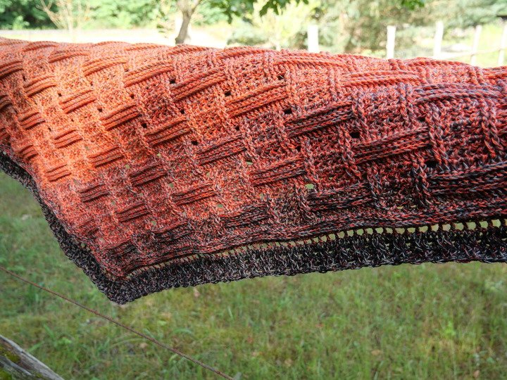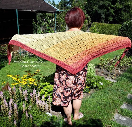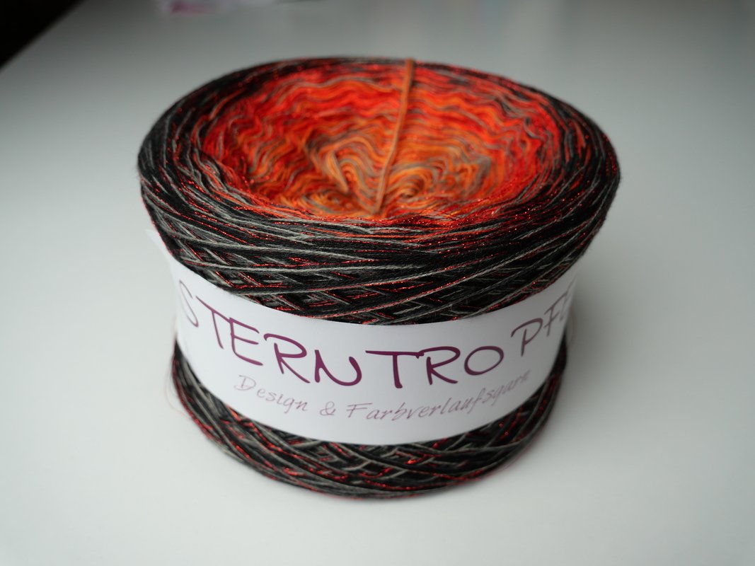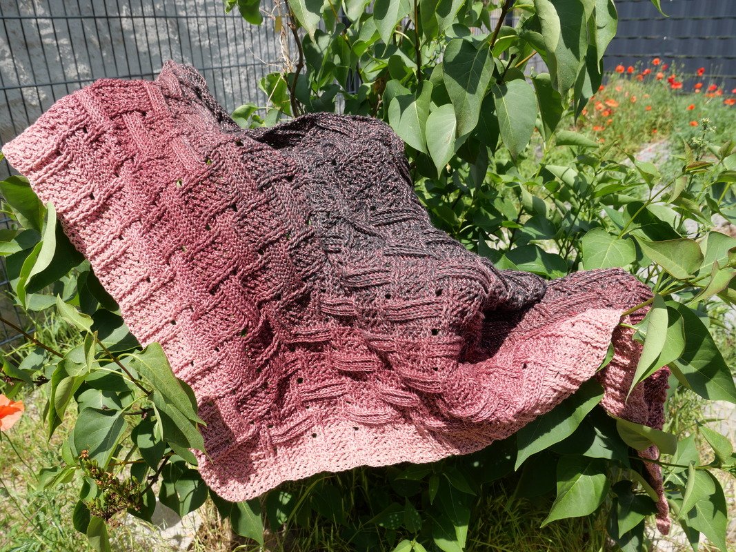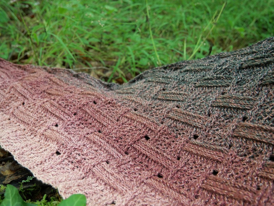 Bei einer Lauflänge von 1200 m/4-fädig hat mein Tuch eine Größe von ca. 194 x 48 cm.