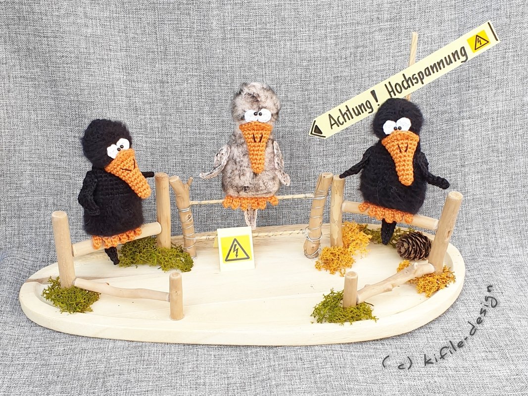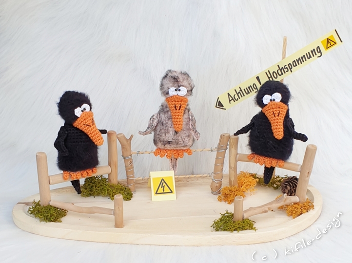 Die Raben werden mit dem angegebenen Material ungefähr 12cm hoch