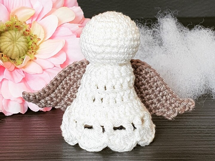 Mit der angegebenen Wolle ist jeder Engel nach Fertigstellung ca. 7cm groß.