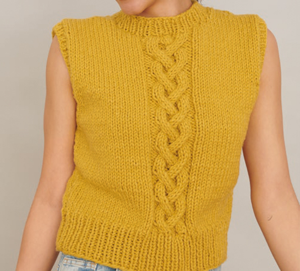 Der Pullunder-Quickie: Mit dickem Schurwoll-Garn entsteht schnell und einfach dieser gemütliche Slipover. Der schmückende Zopf im Vorderteil ist hier der Hingucker. Daisy strahlt in beliebigen Farben!
