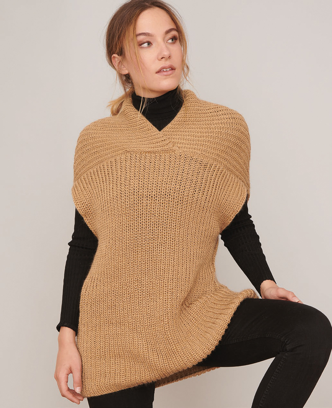 Cashmere Queen von Schoppel (45 % Schurwolle, 35 % Kaschmir, 20 % Seide, 140 m/50 g) 400 (450/500) g Camel (Fb 7181) Stricknadeln 4,0 mm