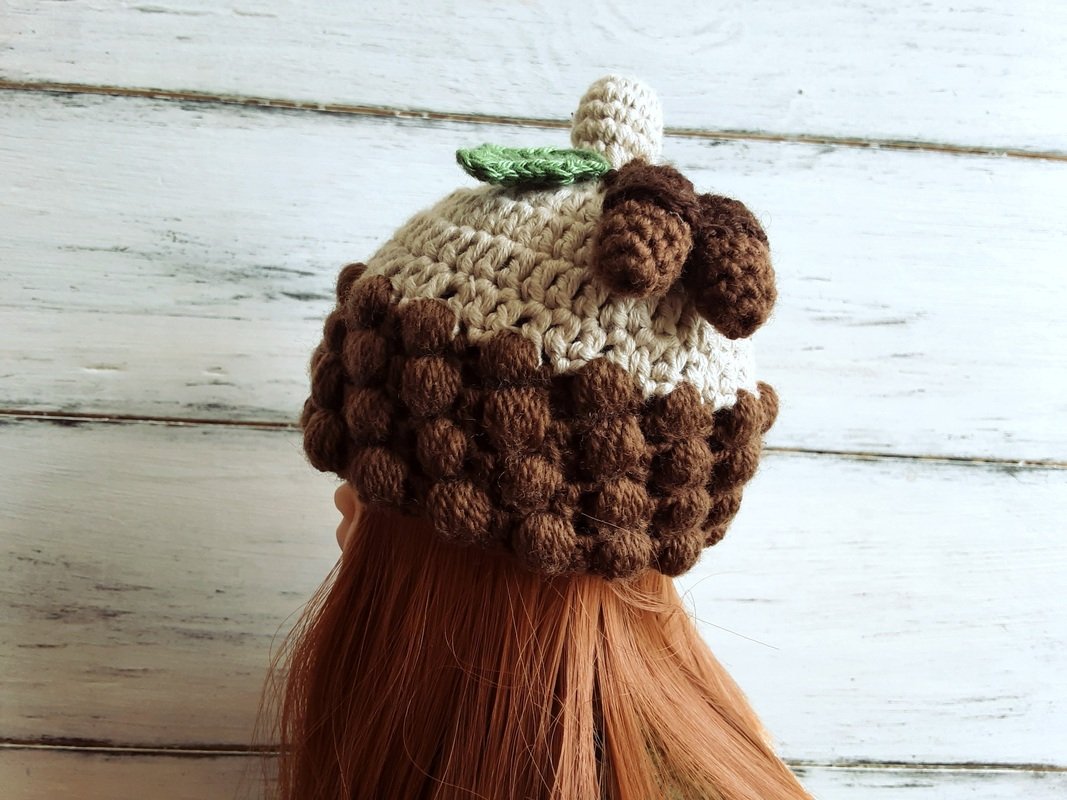 Puppen Eichelmütze. Herbstlich im Design. Ein ideales Geschenk für die Tochter oder Enkelin.