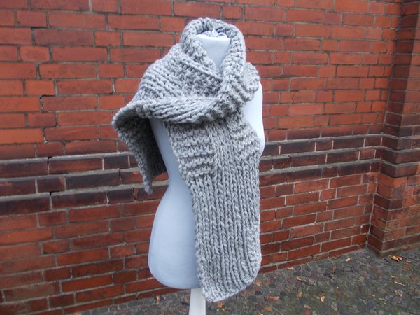Ein superschöner breiter und langer Schal, tragbar in vielen Varianten (siehe Bilder), einfach zu stricken, auch für Anfänger geeignet. Der Schal kann mit dicker Wolle (einfacher Faden) oder auch mit doppeltem Faden gestrickt werden. Hinweise zu Material und Zubehör benenne ich in der Anleitung.