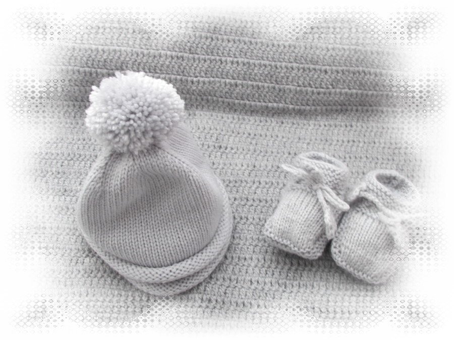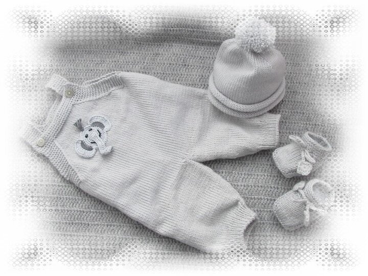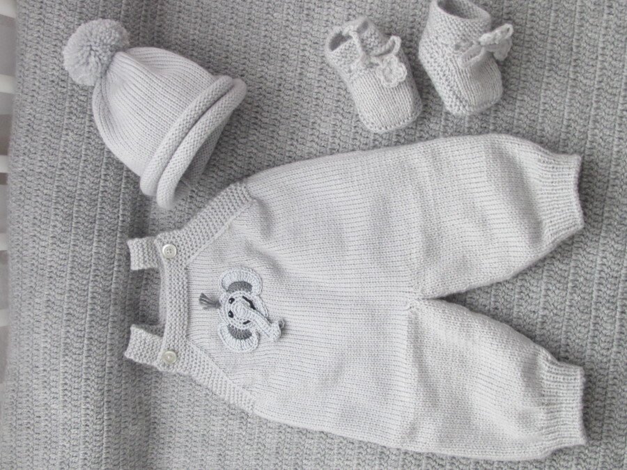 wunderschönes Strickset Gr. 50 3-teilig WOLFI mit Häkelapplikation