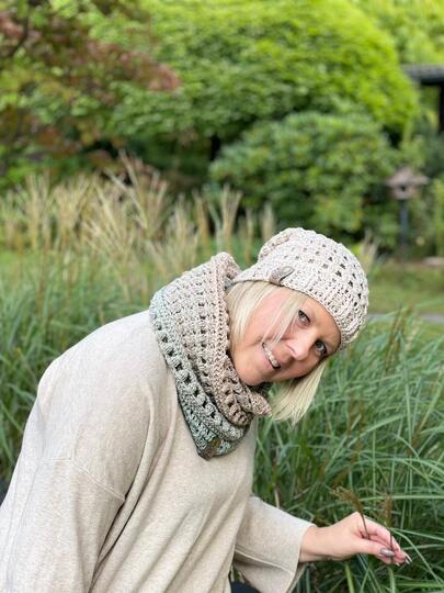 Ihr könnt euch mit dieser Anleitung ein symmetrisches oder asymmetrisches Tuch oder einen Loop und eine Mütze erarbeiten.