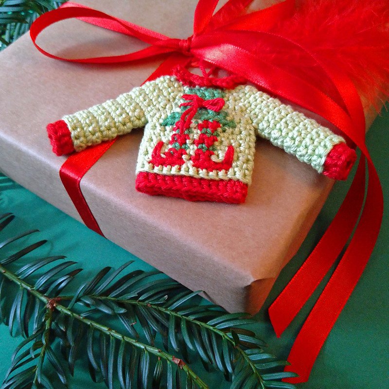Schrille Farben, gewagte Motive und manchmal auch ein wenig kratzig. Genau, es ist wieder Zeit für Weihnachtspullover! Dieser ist zwar sehr klein, aber dafür eine süsse Weihnachtsdeko und nicht nur für fleissige Elfen geeignet.