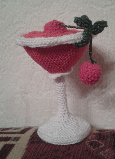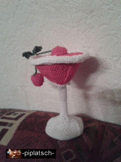 Das Gläschen ist 9 cm hoch, hat oben 7 cm Durchmesser und die Kirschen haben einen Durchmesser von 1,6 cm.