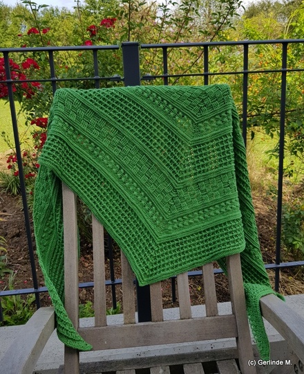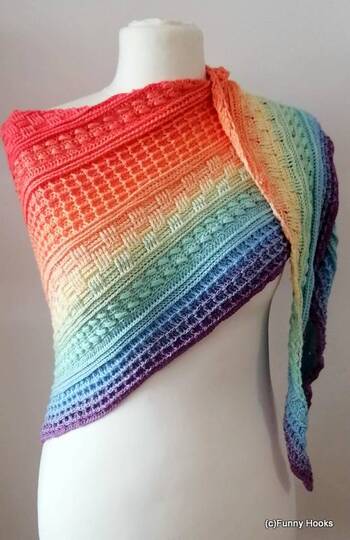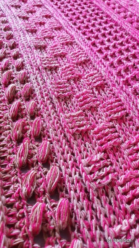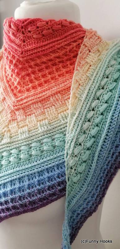 Die Muster sind einfach zu häkeln und auch für Anfänger gut machbar. Das Tuch eignet sich perfekt für Farbverlaufgarn/Bobbel, ist aber auch in uni ein absoluter Hingucker.