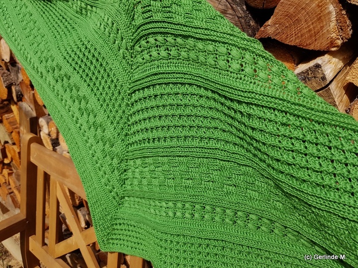 Das Tuch im Titelbild wurde 201 x 49 cm groß.