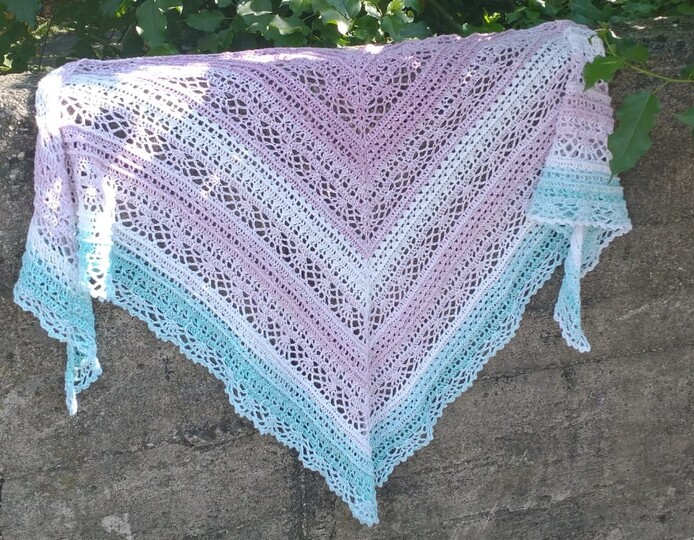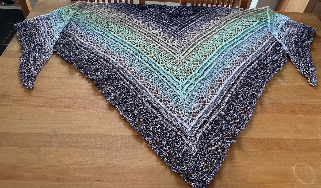 Dies ist eine 11 Seitige, genaue Anleitung zum Häkeln eines Dreieckstuchs.