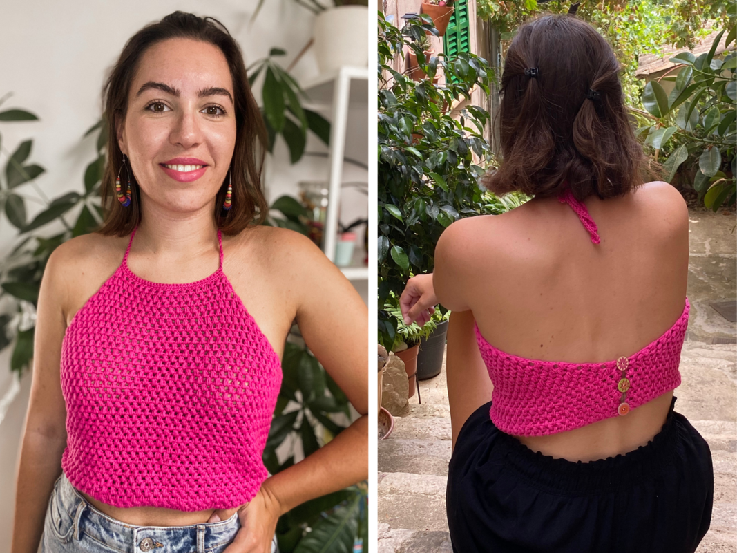 Das Neckholdertop "Chloe" ist ein luftiges Sommertel für jeden Kleiderschrank, tragbar zu vielen Gelegenheiten im Sommer. Das Muster besteht komplett aus Büschelmaschen, welche ich dir im Rahmen der Anleitung Schritt für Schritt beibringe.