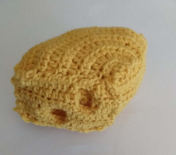Für die Käsestücke habe ich Nadelstärke 3 und Woll Butt Innsbruck in gelb genutzt
