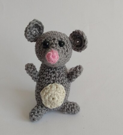 Die Maus ist 3-4 cm lang und breit (ohne Schwanz) und etwa 9 cm hoch.
