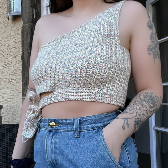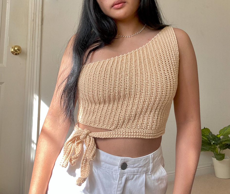 Das One Shoulder Top "Livia" ist dein It-Piece für den Sommer. Mit stylischem cut-out und coolem Gürtel wickelst du deine Taille gekonnt in Szene. Die verwendete Maschenart verleiht dem Top einen Stricklook, sodass niemand darauf kommt, dass du es selbst gehäkelt hast.