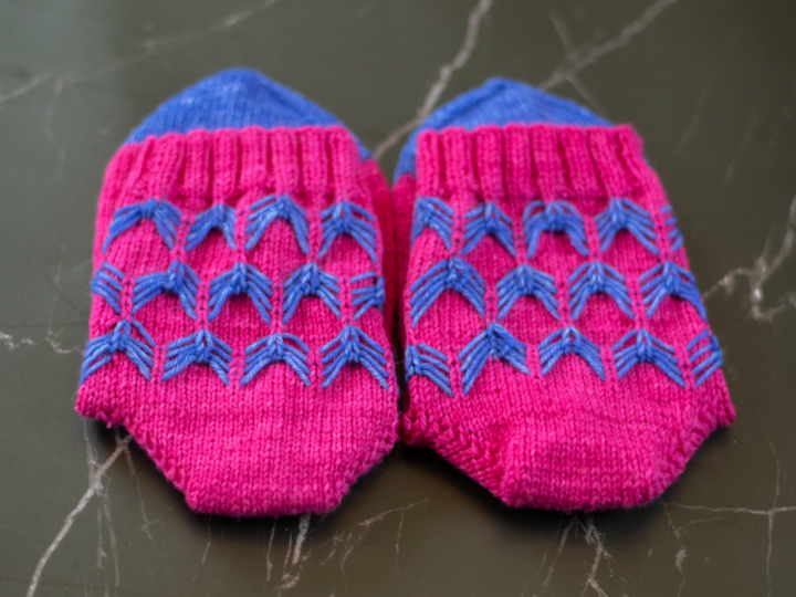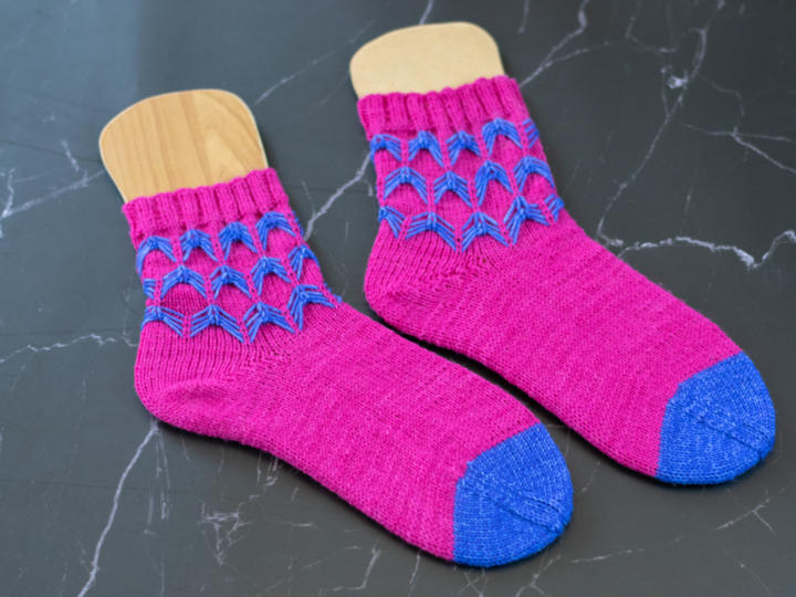 Die Anleitung besteht aus 2 Teilen, zum einen der Anleitung selbst, zum anderen einer Extra-Datei für Ferse und Spitze inklusive einer Sockentabelle.