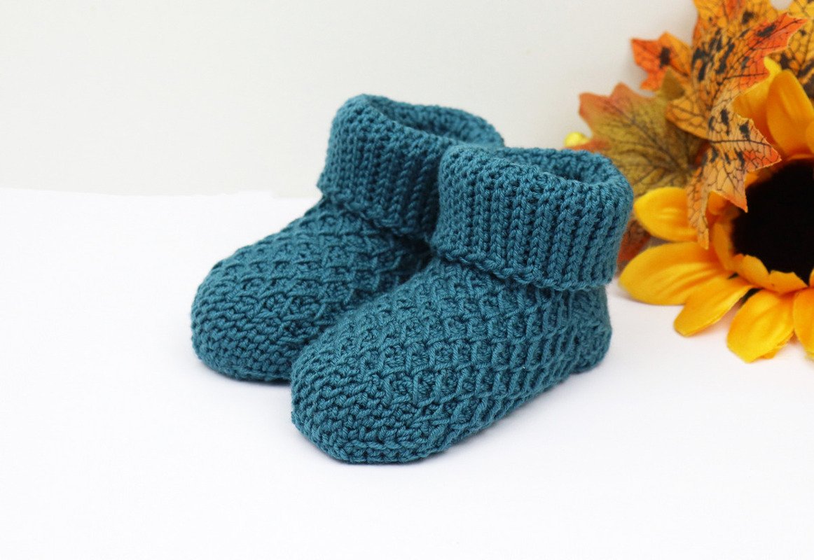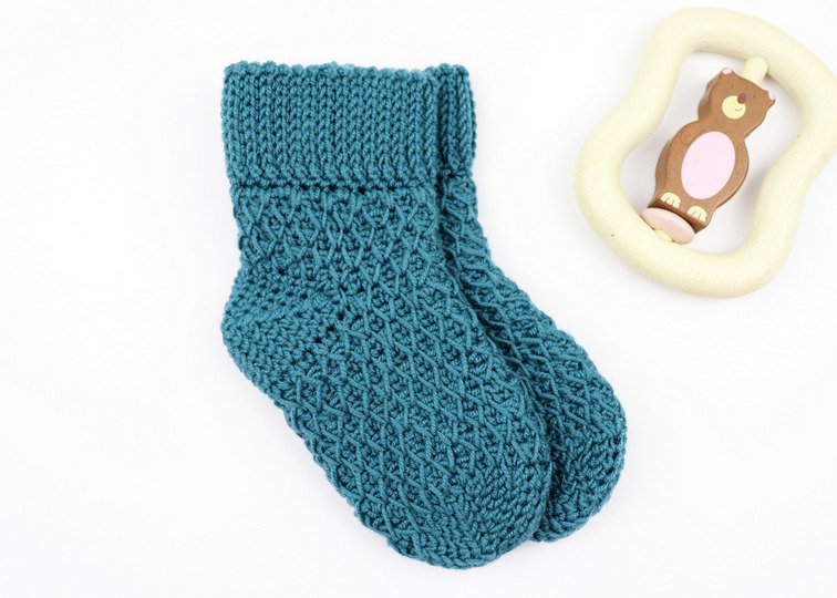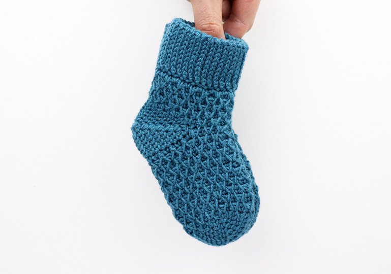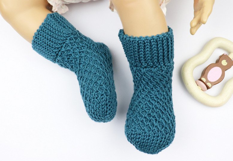Warme Baby- & Kindersöckchen mit dem Wabenmuster für Dein Kind oder Enkelkind häkeln, ist mit dieser Anleitung überhaupt kein Problem! Ein Muster im Stricklook, leicht anpassbare Größe machen diese Söckchen zu einem echten Hingucker!
