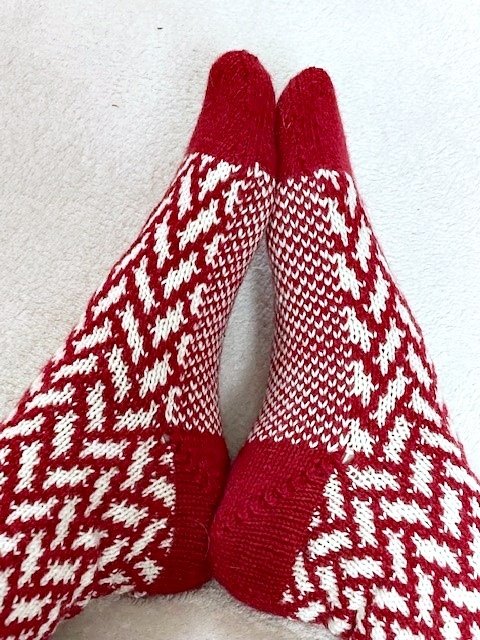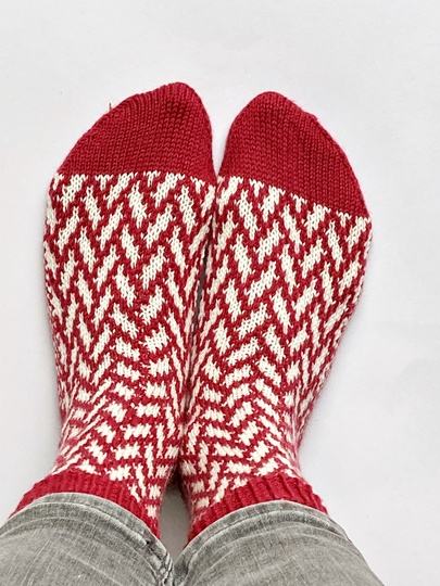 Maritime Socken gehören für jeden Küstenliebhaber zur Garderobe dazu. Bei diesen rot-weißen ist ein einfaches Jacquardmuster mit herrlich weichem Sockengarn kombiniert.
