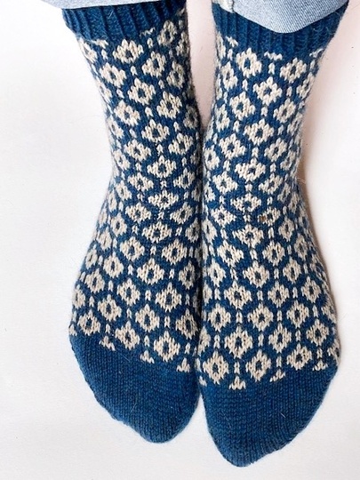 Der Socktober nähert sich mit großen Schritten, die kalte Jahreszeit ist nicht mehr weit. Damit Ihr mit warmen Füßen gut durch den Winter kommt habe ich ein neues Sockendesign für Euch. Die Strümpfe werden zweifarbig in fair isle Technik gestrickt. Das Muster ist nicht schwierig und läßt sich schnell merken.