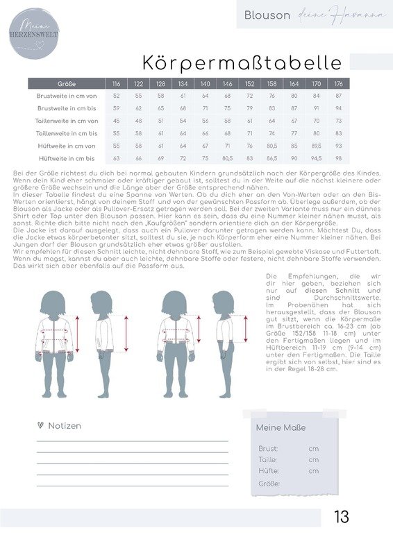 Dieses Schnittmuster „deine HAVANNA “ beinhaltet die Größen 116-176.