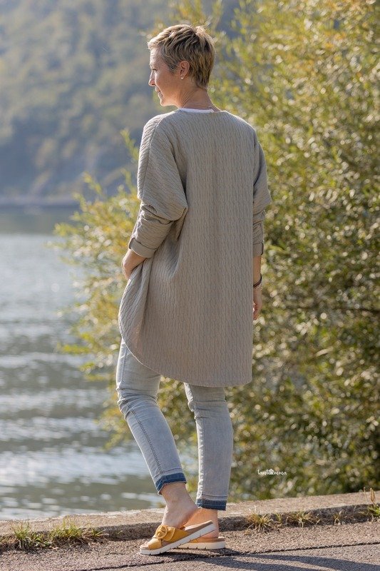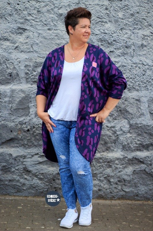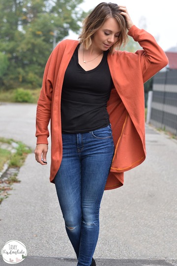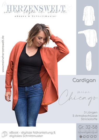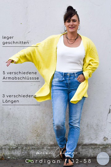 Chicago ist ein Schnittmuster für einen lässigen Cardigan. Der Cardigan hat nur zwei Schnittteile und ist einfach und schnell genäht. Er ist eher etwas oversize geschnitten und in der kälteren Jahreszeit ein absolutes Wohlfühlteil.