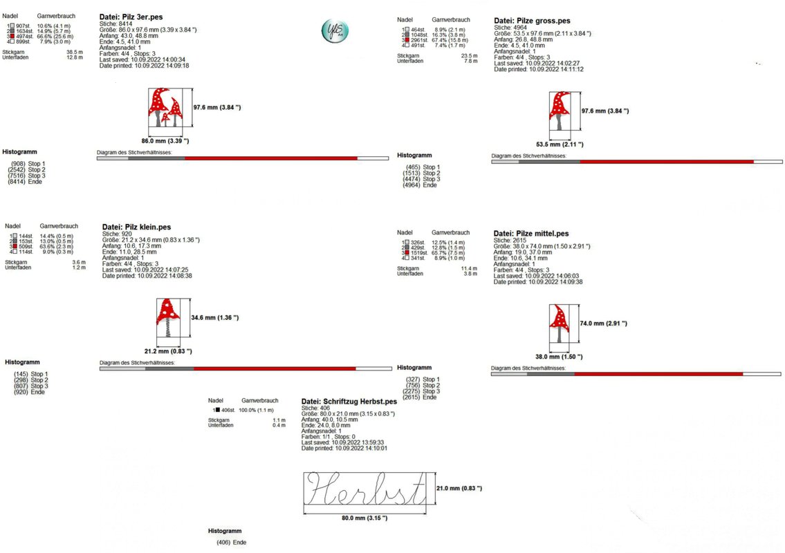 Stickdatei Pilz - 5 Stickdateien