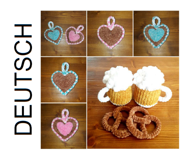 In dieser detaillierten PDF- Häkelanleitung auf Deutsch, erkläre ich dir Schritt für Schritt, wie du recht schnell deine passende Oktoberfest-Deko bestehend aus Bierkrug mit Brezel und Lebkuchenherz häkeln kannst :)