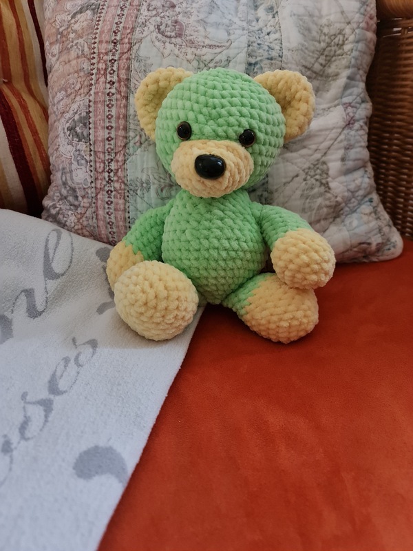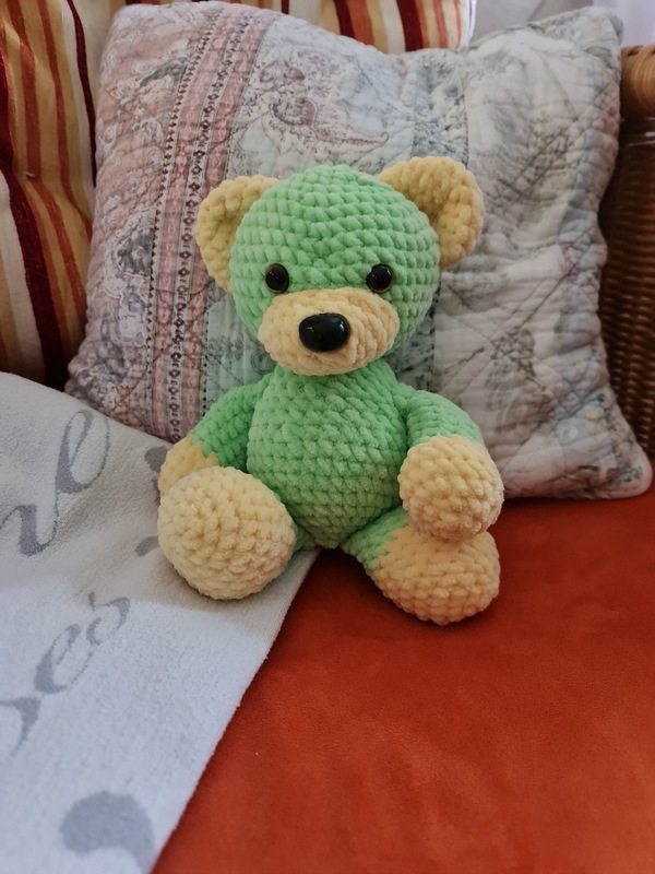 Der kleine Bär "Kuschel" wird ca. 23cm groß.