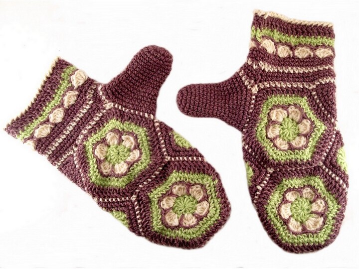 Stück für Stück statt rundherum im Kreis: Diese Handschuhe häkelst du aus insgesamt 8 Blumenhexagons und Mini-Grannys. Das blumige Motiv ist ebenso dekorativ wie vielseitig: So kannst du jedes Hexagon in anderen Farben häkeln und dir ganz individuelle Accessoires zaubern, die dich im Winter wärmen.