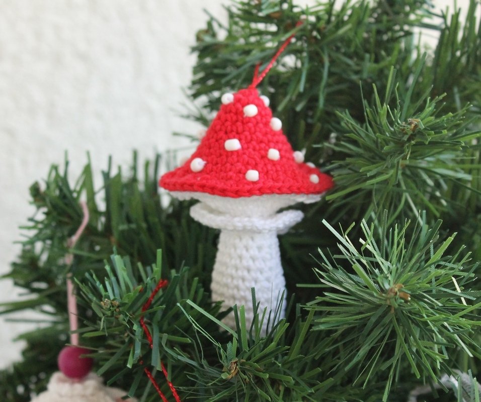PDF-Häkelanleitung zum Häkeln von dem Anhänger "Fliegenpilz" (Tannenbaumschmuck) zum Dekorieren des Tannenbaums oder als Mitbringsel für die Freunde. Dieser Pilz kann man auch als Taschenbäumler benutzen.