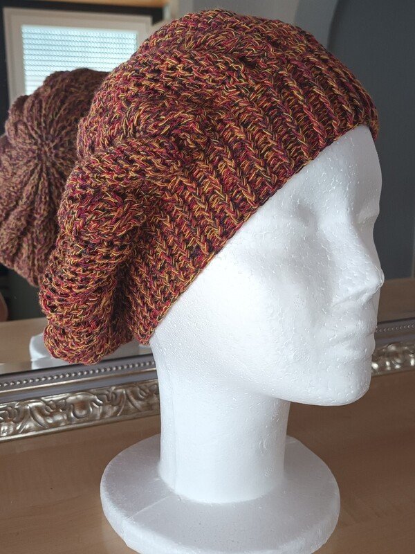 Die Mütze kann in den Größen S/M und L/XL gearbeitet werden, das entspricht einem Kopfumfang von 54 - 60cm.