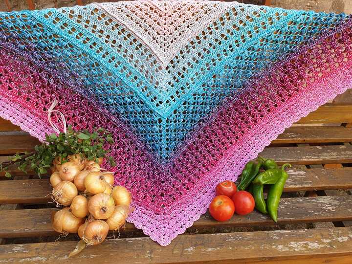 Bei diesem Produkt handelt es sich nicht um das fertige Tuch, sondern um eine Häkelanleitung zum Selbstanfertigen als PDF-Datei zum Herunterladen