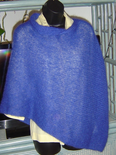 Dies ist eine Kurzanleitung für einen federleichten und sehr einfach zu strickenden Poncho in Einheitsgröße aus nur 100 g KidSilk (Austermann). Die Anleitung enthält das Vorschaubild.