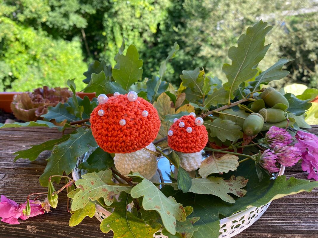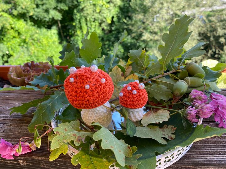 Zum Herbst gehören sie einfach dazu, Fliegenpilze. Man kann sie vielfältig dekorien, egal ob in einem Herbstgesteck oder einem Türkranz. Doch auch unterm Jahr sind sie ein schönes Mitbringsel, zum Beispiel als Glücksbringer vor einer Prüfung oder zu Neujahr.