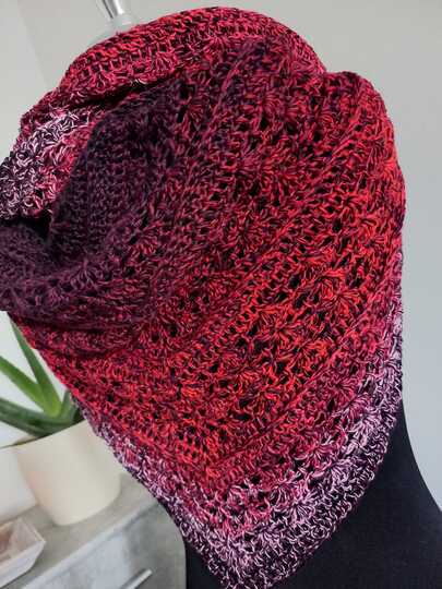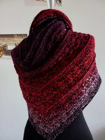 Die flache Variante des „Celestial“, ist im Gegensatz zur klassischen Variante, länger und ein nicht so tief gearbeitetes Dreieckstuch.