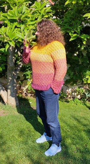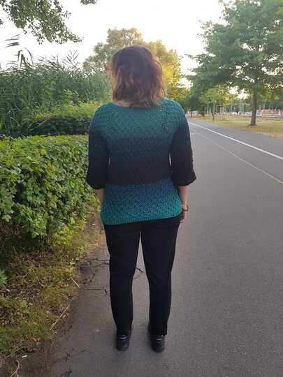 Durch die Variation der Wolle ist der Pulli sowohl für wärmere und kältere Tage verwendbar, also ein richtiger Allrounder.