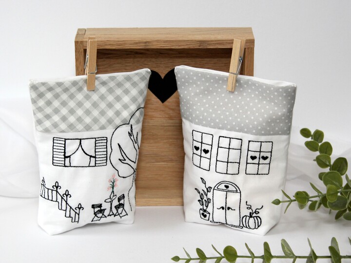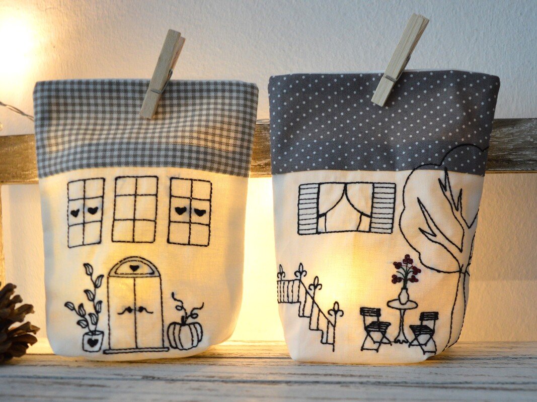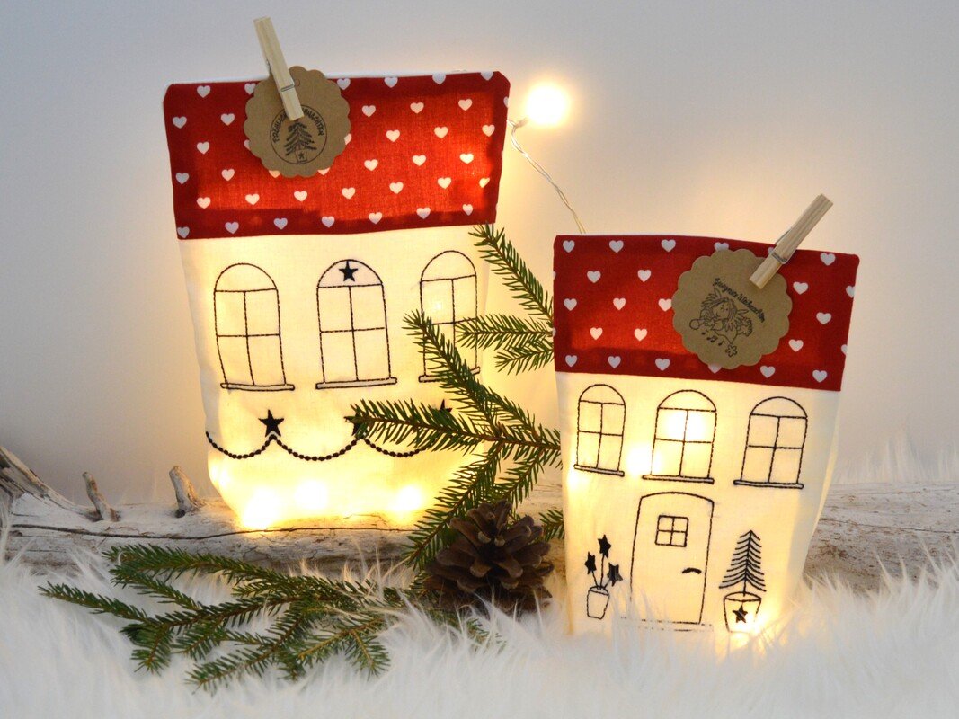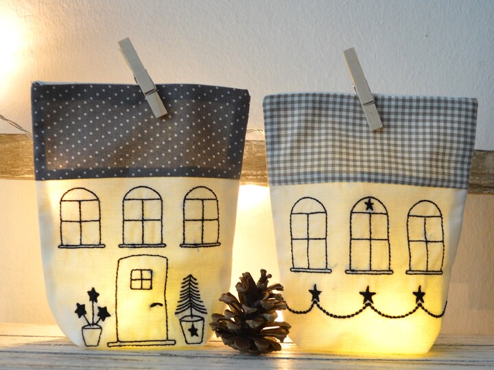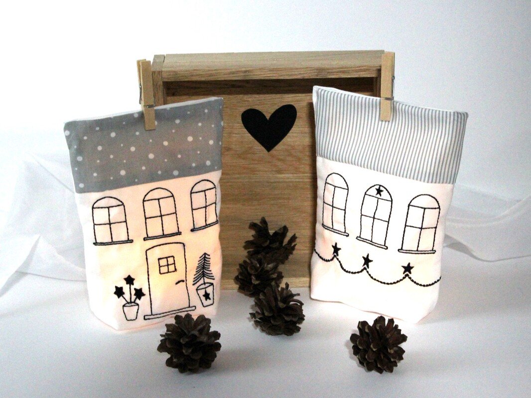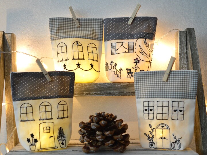 Lichterbeutel Stickdatei als kleine Häuschen,